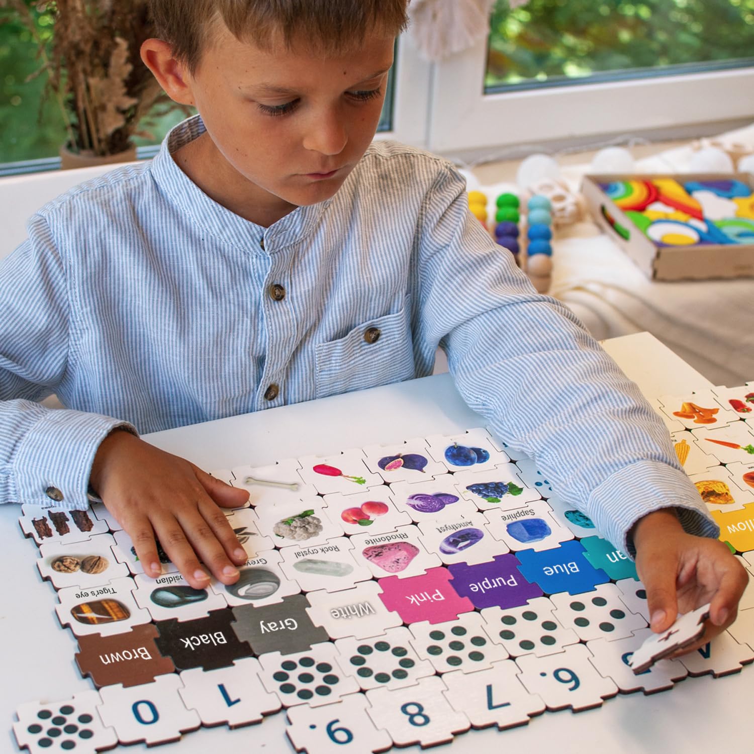 This wooden matching puzzle game aligns with Montessori and Waldorf education methods, encouraging self-guided exploration and discovery. As an open-ended toy, it perfectly suits both toddlers and older kids and has no limits in inventing imaginative ways to play. There are no extra shades so that the child can easily recognize the primary colours. This Montessori board game would become a perfect birthday, Christmas, Easter gift or an addition to the educational collection of preschool games in a learning group. Also, our sensory toys for babies are portable and easy to store thanks to the wooden sensory tray.