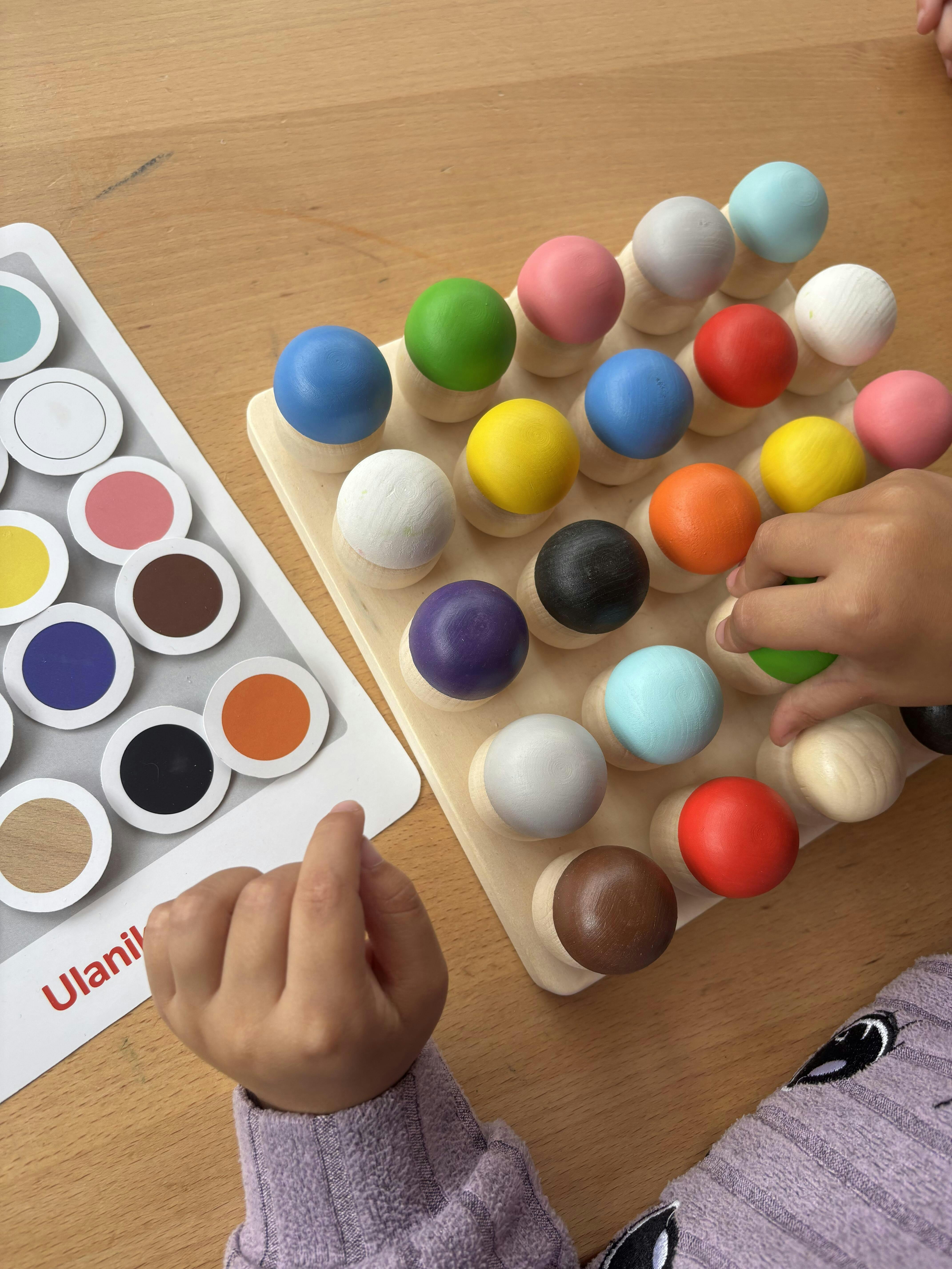 This wooden mushrooms toy peg sorter game aligns with Montessori and Waldorf education methods, encouraging self-guided exploration and discovery. As an open-ended toy, it perfectly suits both toddlers and older kids and has no limits in inventing imaginative ways to play. There are no extra shades so that the child can easily recognize the primary colours. These Montessori colour sorting toys would become a perfect birthday, Christmas, Easter gift or an addition to the educational collection of preschool games in a learning group. Also, our sensory toys for babies are portable and easy to store thanks to the wooden tray that would look so nice in your Montessori shelf.