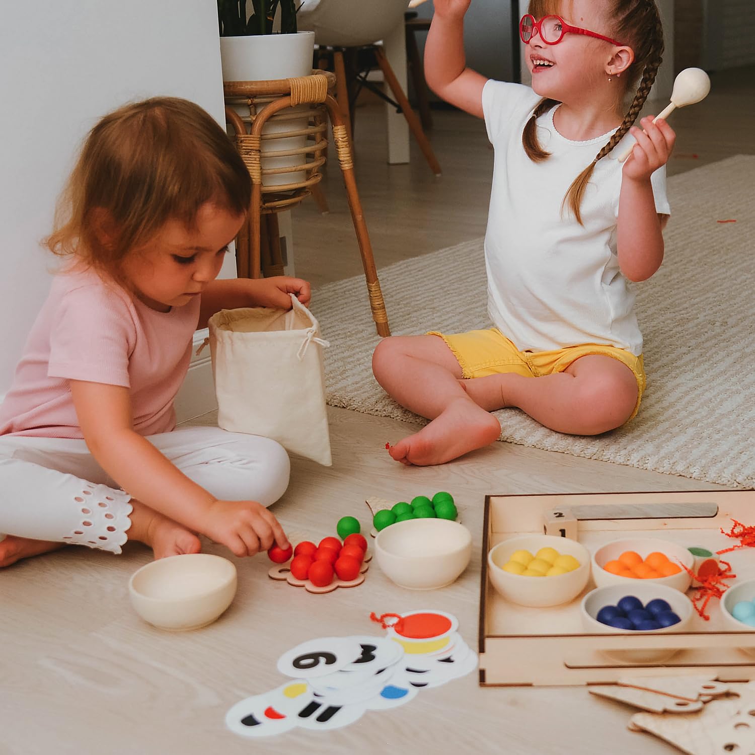 This wooden ball sorter matching game aligns with Montessori and Waldorf education methods, encouraging self-guided exploration and discovery. As open ended toys, they perfectly suit both toddlers and older kids and have no limits in inventing imaginative ways to play. There are no extra shades so that child can easily recognize the primary colors. These Montessori colour sorting toys for toddlers would become a perfect birthday, Christmas, Easter gift or an addition to the educational collection of preschool games in a learning group classroom. Also, our learning & education toys are portable and easy to store thanks to the wooden tray that would look so nice in your Montessori shelf.