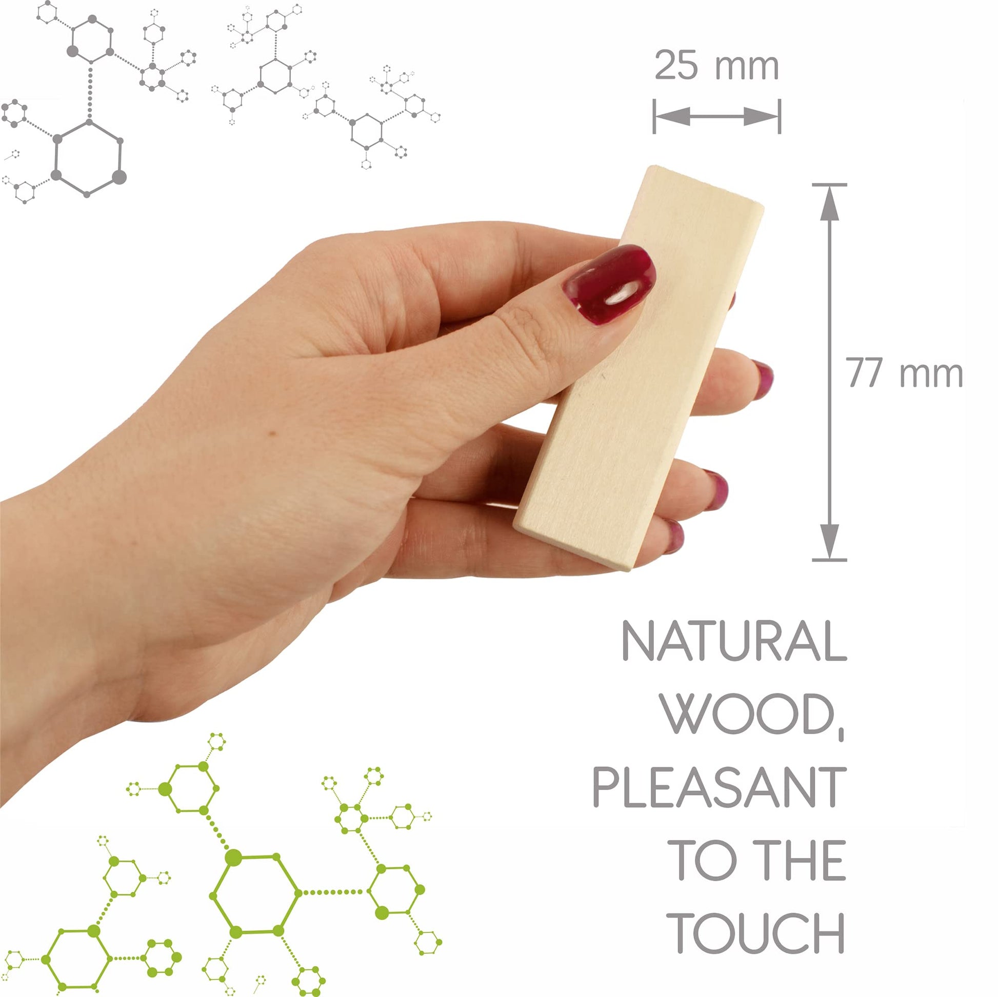 The blocks are made of natural solid linden wood. Please note that wood is a durable but water-sensitive material, so it is not advised to wash it — it's better to use a dry cloth to wipe the details gently. The case for blocks is made of birch plywood. The game set is eco-friendly and safe for children over 3 years. For smaller children, we recommend adult supervision.